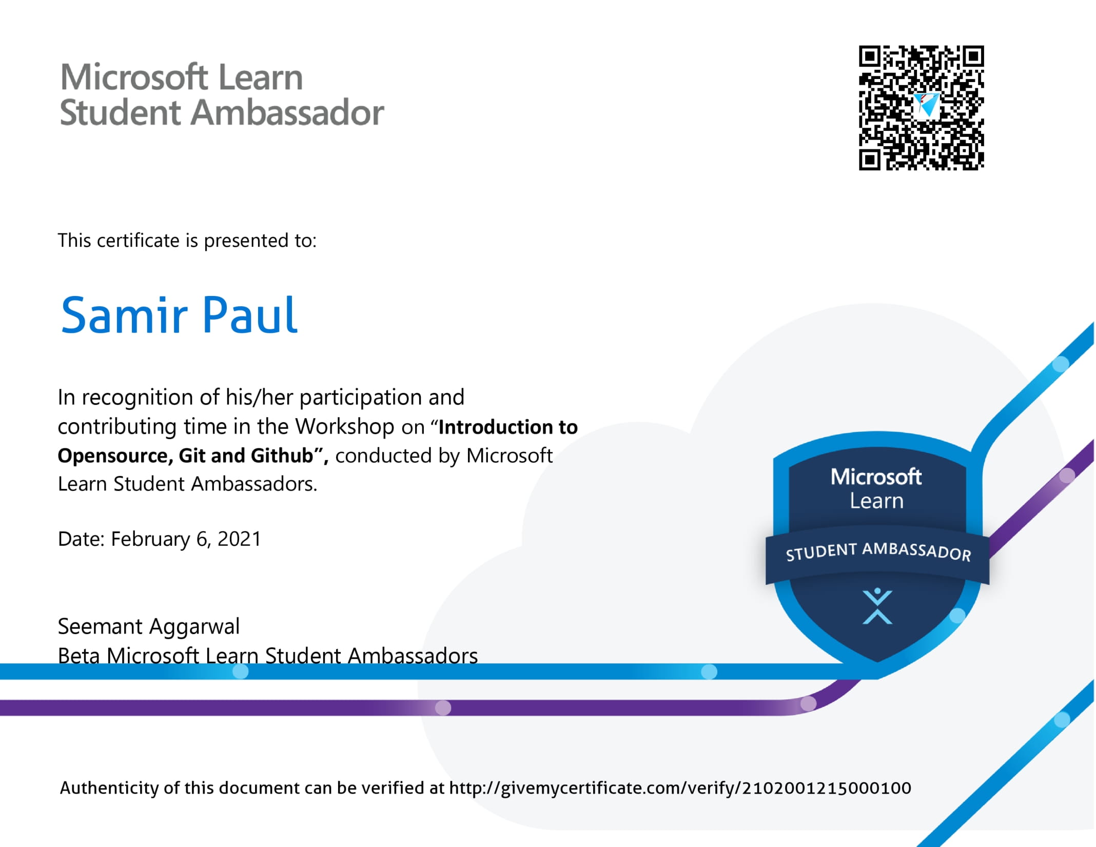 Microsoft Learn Student: Introduction to Opensource, Git and Github - 2102001215000100