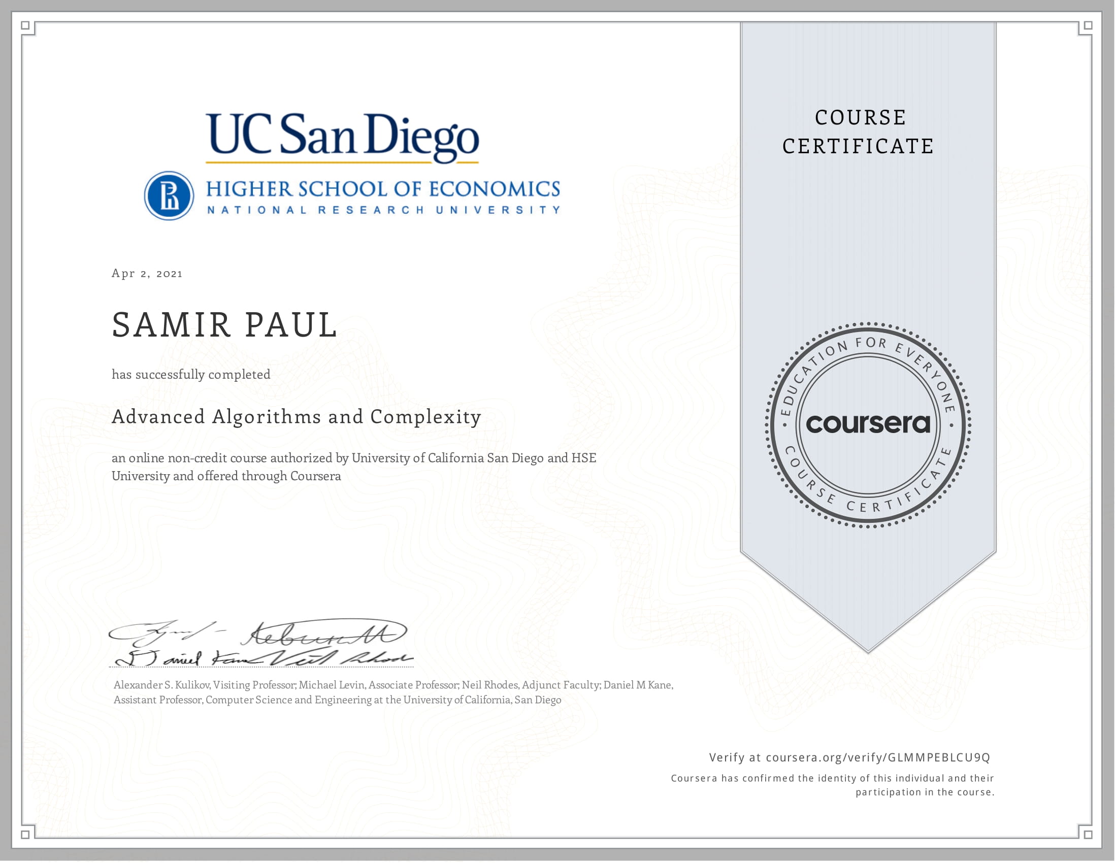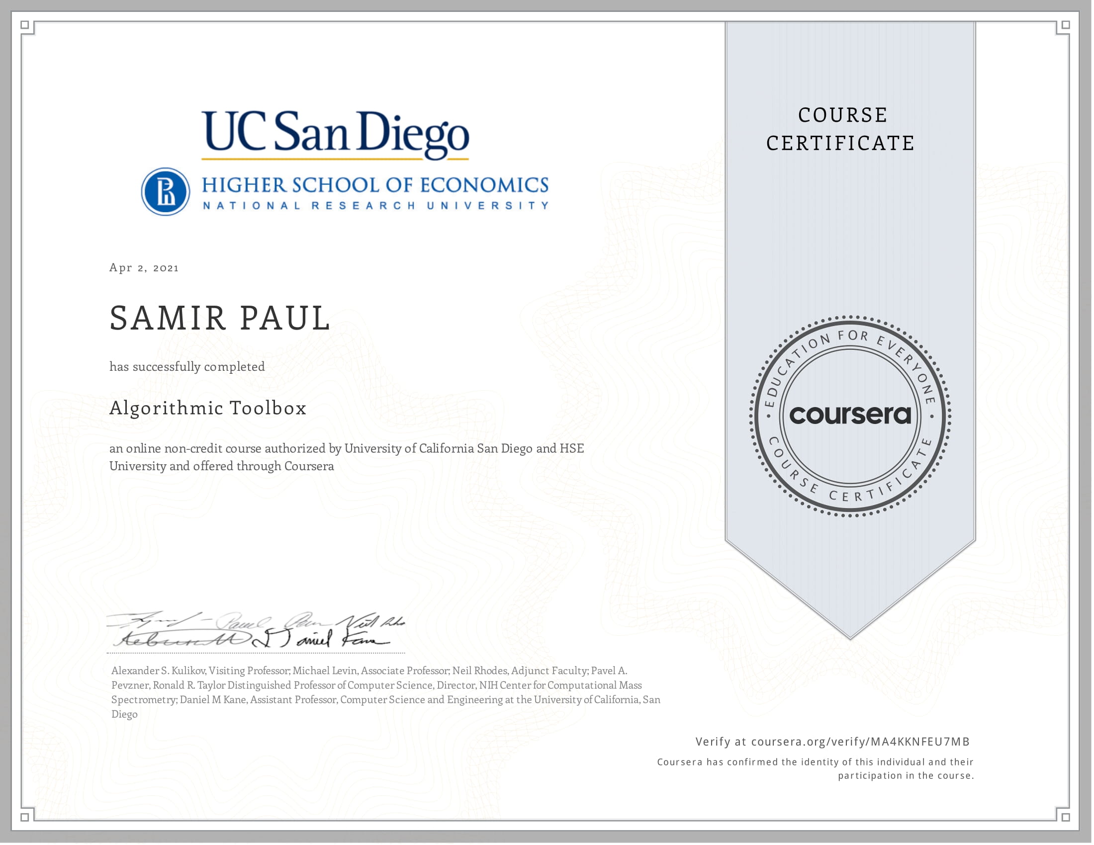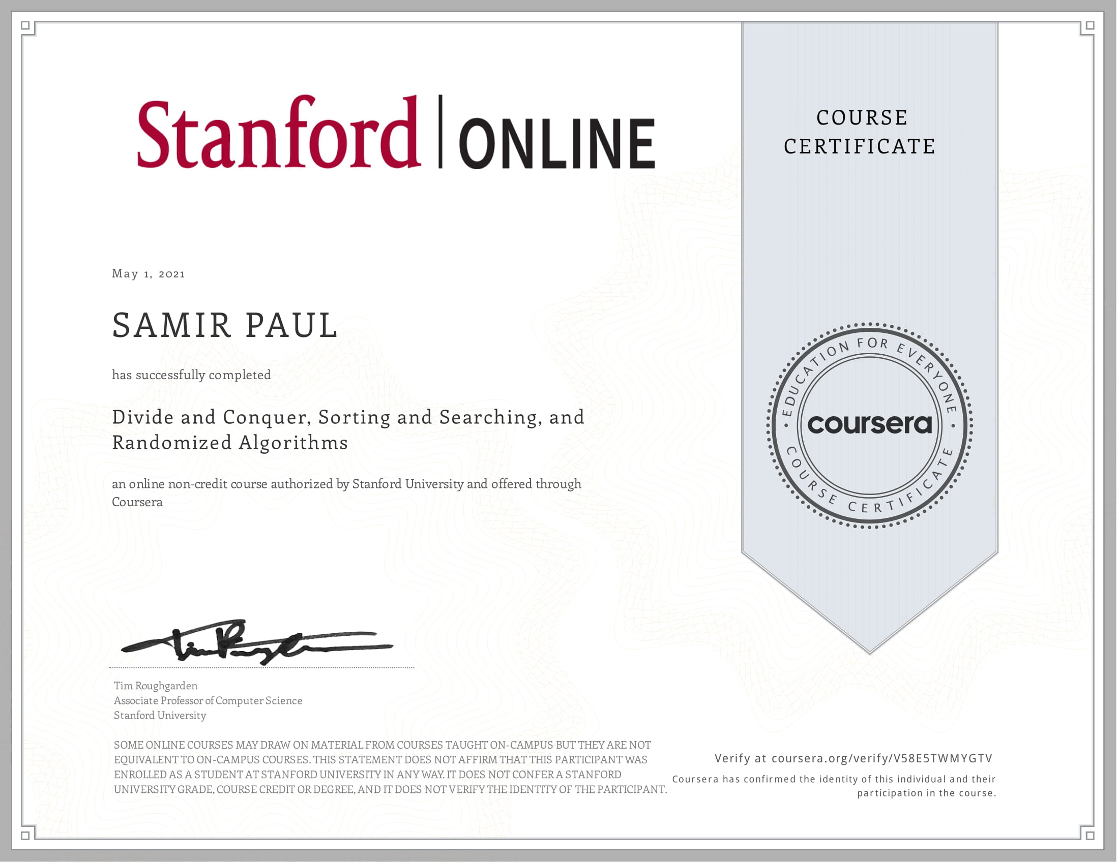 Coursera: Divide and Conquer, Sorting and Searching, and Randomized Algorithms - V58E5TWMYGTV