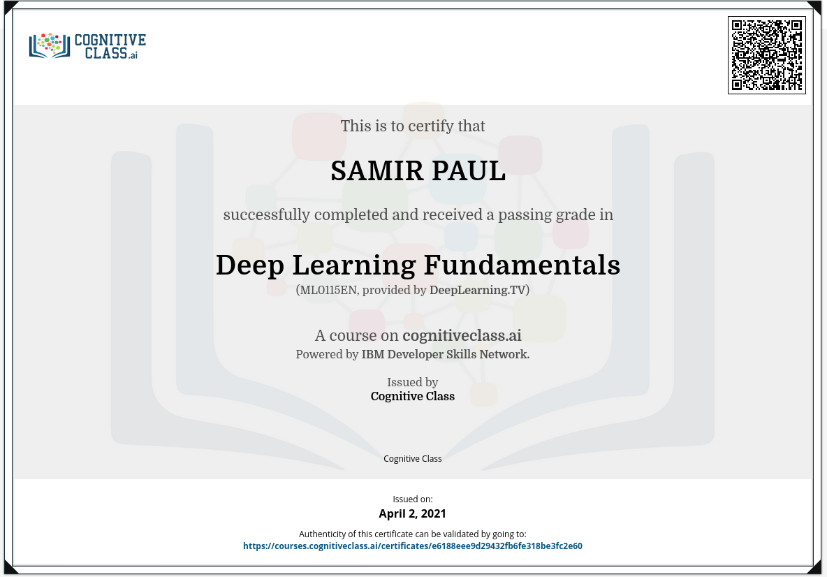 Cognitive Class: Deep Learning Fundamentals course