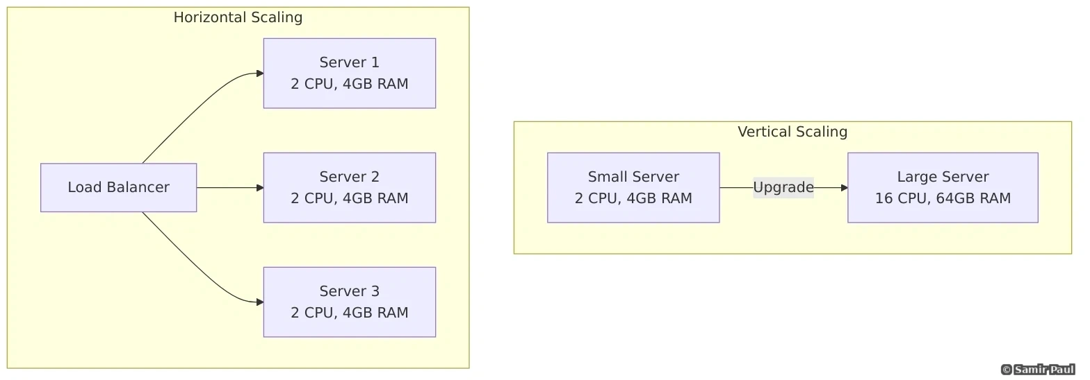 Scalability is the ability of a system to handle increased load by adding resources. There are two primary approaches: